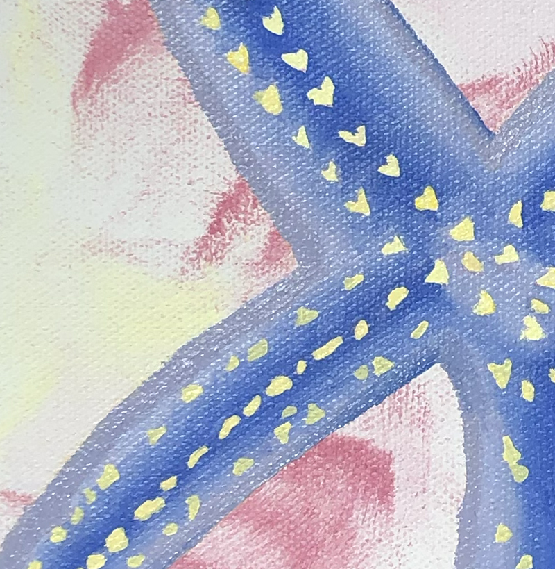 It had been on my easel for a couple of months and I didn’t know where I wanted to go with it so I had left it, glancing at it occasionally as I went about my day until I drew a lazy looking sea star in my sketchbook. Then I felt like I knew what should go on that canvas.